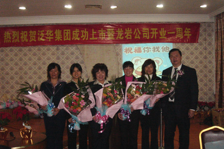 尽管晚会上饭菜平常,节目普通,但是伙伴们在一起庆祝一年的成功与喜悦,热情洋溢,场面仍然十分感人。龙岩分公司总经理刘标首先致辞,他饱含深情向在场的每一位泛华业务伙伴以及各级领导、各界朋友表示了诚挚的感谢。他表示,龙岩分公司一年来在各项工作中都取得了骄人的成绩,展现了泛华人辛勤劳动、无私奉献、勇于拼搏、敢于创造的一流业绩风采。过去的一年历历在目,铭记于心,展望未来,龙岩更加充满信心。2008年是集团上市的第一年,也是泛华重拳出击的一年,集团推出制造百个百万富翁的创业计划,同时推出全体代理人的权益证奖励方案,让每一个代理人都有机会得到权益证。讲话中,刘标总经理鼓励龙岩全体将士一定要借这股东风努力拼搏,实现创业梦想。