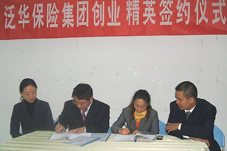 2007年11月26日,泛华保险服务集团旗下四川泛华鑫泰保险代理有限公司首次创业精英签约仪式在公司会议室隆重举行。省公司总经理室对此次签约极为重视,班子成员均参加了此次签约仪式。