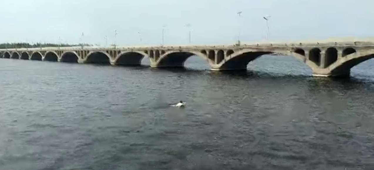有人跳河了!一女子在道明桥上跳河自杀!由于河面宽阔,落水女子的位置离岸边较远,面对这湍急的河水,桥下聚集的数十群众心急如焚却无计可施。