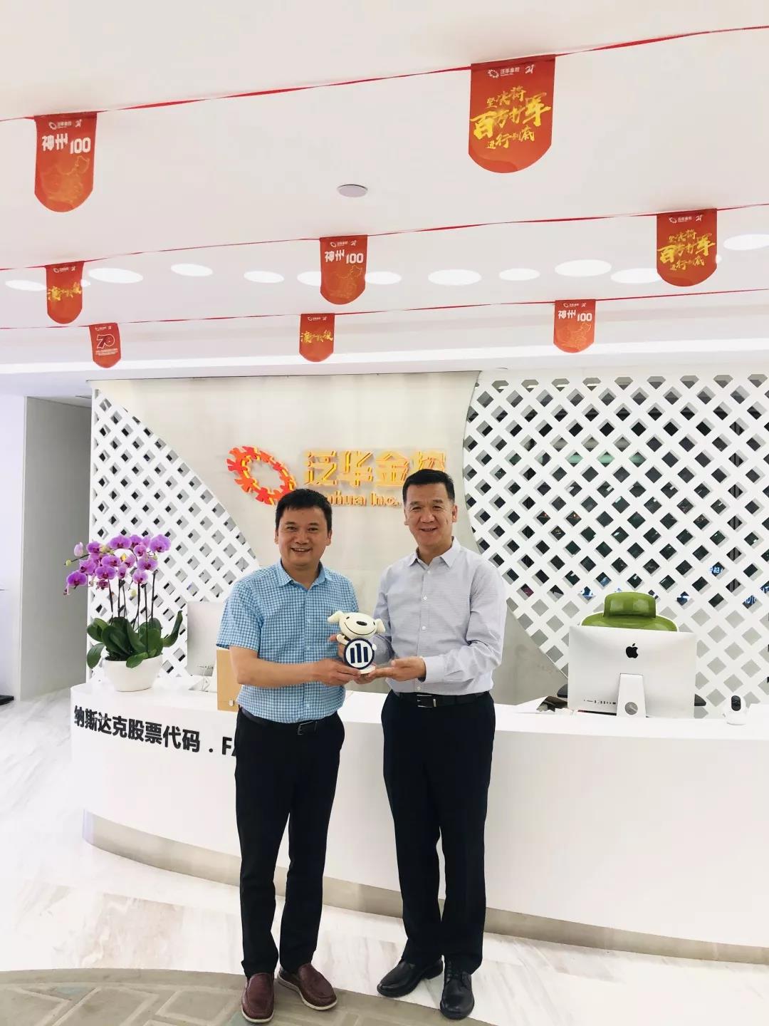 2019年10月17日,京东安联首席执行官徐春俊一行到泛华金融控股集团(以下简称“泛华金控”)总部参观考察。泛华金控董事长兼首席执行官汪春林与来访一行进行了交流座谈。