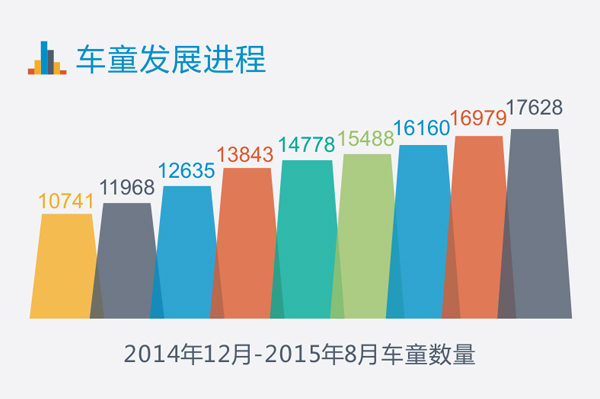 2015年1-6月,车童网完成12万订单,各月呈现逐月上升态势,7月订单量突破