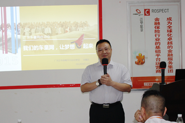 广东平台公司总督导刘耀东先生做了《我们的车童网,让梦想飞起来》的讲话。他详细分析了目前严峻公估市场的形势,希望大家利用这个充满传奇的泛华平台,利用共享经济时代、依托经代资源,一起打造车童网的广东平台,实现事业梦想。东总还提出了对车童的六大期许;认同平台文化,有战略自信;理解创业理念,有制度自信;掌握技能,熟悉流程与标准;协同配合,依托、服务于经代;热爱学习,紧跟时代发展步伐;提升自律,树立良好形象,赢得社会尊重。